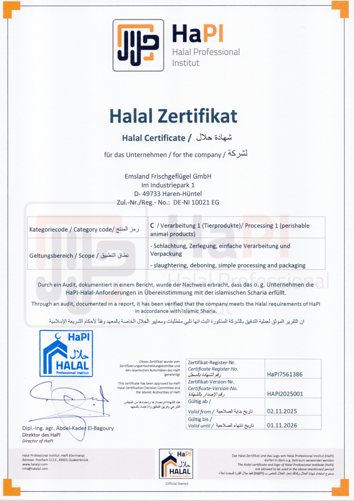 We also offer a large proportion of the fresh chicken products in deep-frozen form. The advantage of these IQF products (individually quick frozen) is that the frozen chicken parts can be taken out individually as needed.